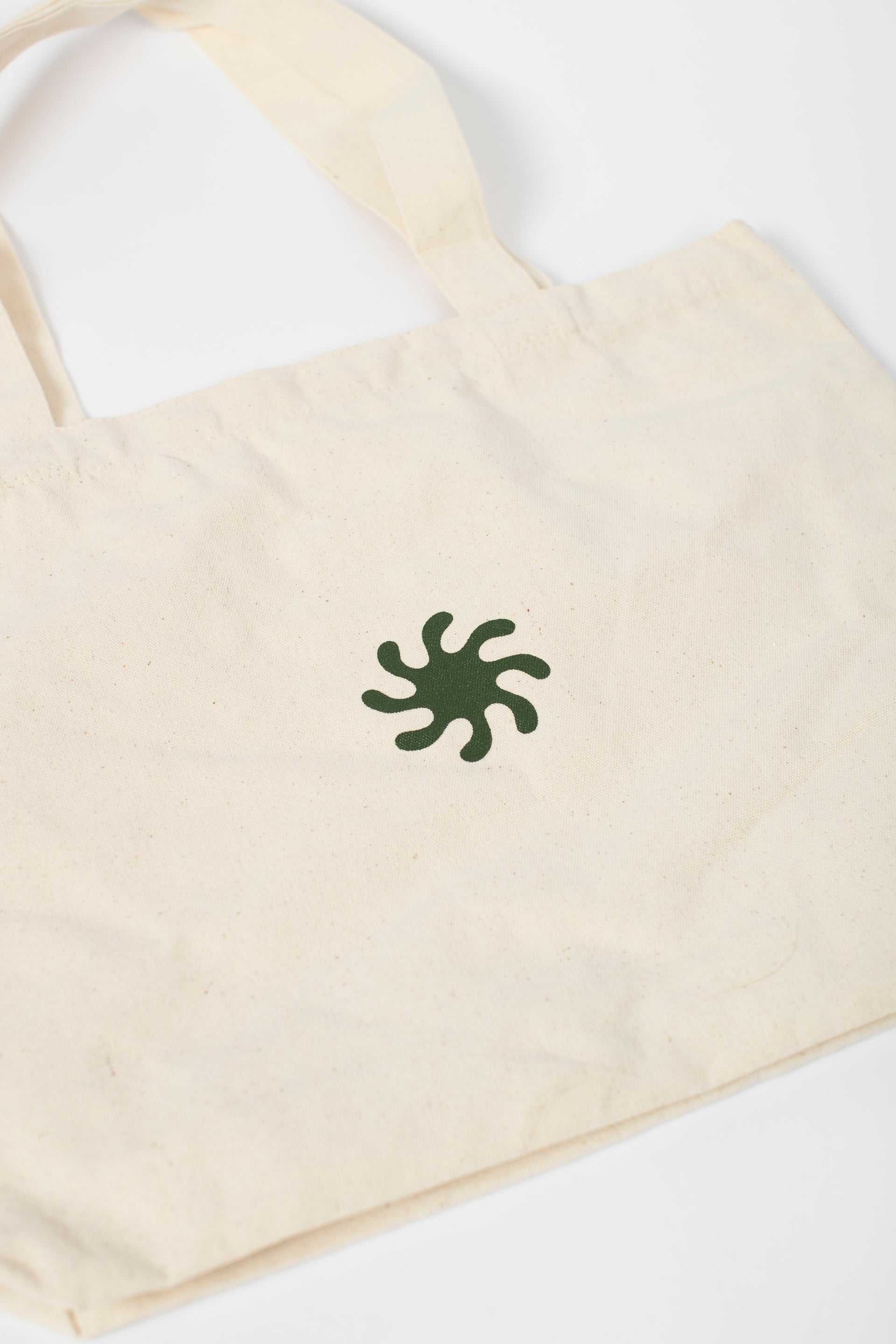 Custom cotton canvas tote bag with screen printed artwork on both sides + bottom.